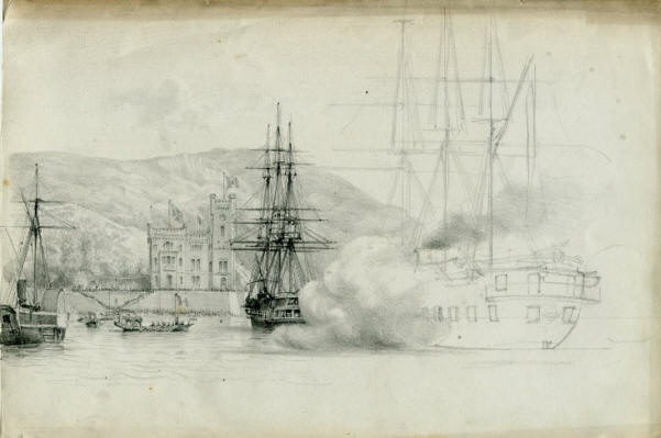 En 1864, il embarque sur la frégate La Thémis qui escorte l'Empereur