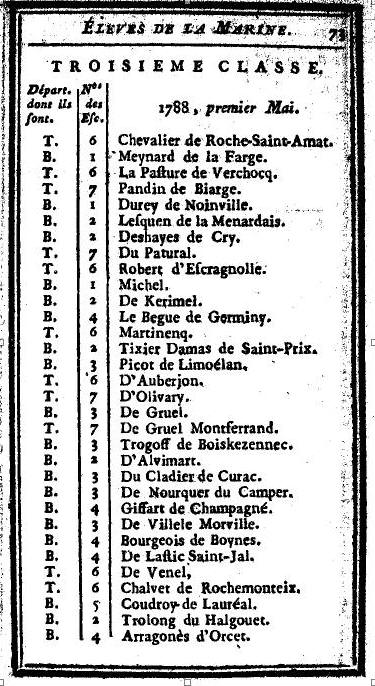 Tous les élèves (51, nommé le 1er mai) sont répartis dans trois ports, BREST, TOULON et ROCHEFORT