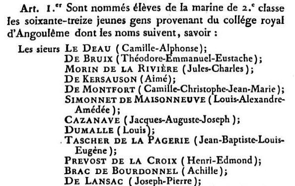 années de promotion 1827 à 1829 (qui se régulariseront en 1830), les