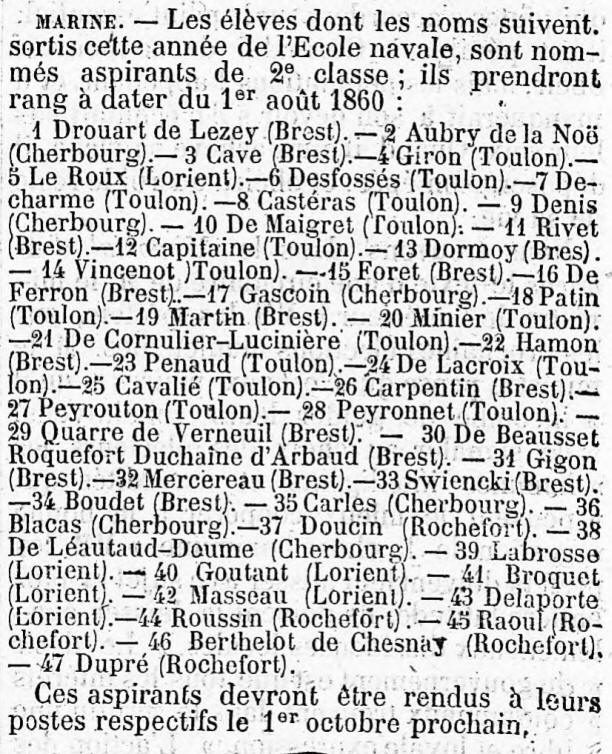 - DECHARME Pierre Théodore Jules (1841 - 1862)