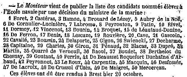 A fait partie de cette promotion : sur le "BORDA" - CV LACAPELLE