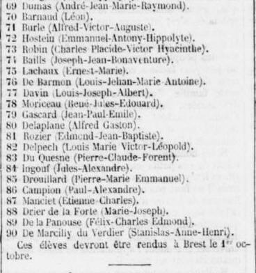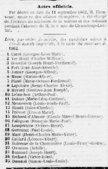 A fait partie de cette promotion : sur le "BORDA" - Cdt CV NOURY