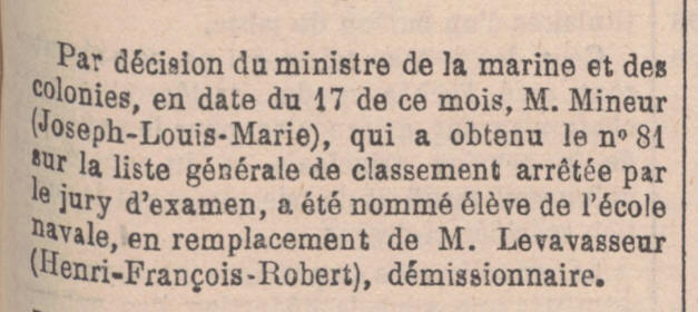 - MINEUR Joseph Louis Marie (1864 - ...)