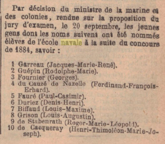A fait partie de cette promotion : Sur le "BORDA II" - Cdt CV CAUBET