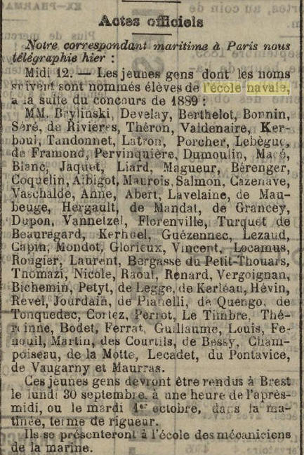 Extrait La Dépêche de Brest / 16 septembre 1889