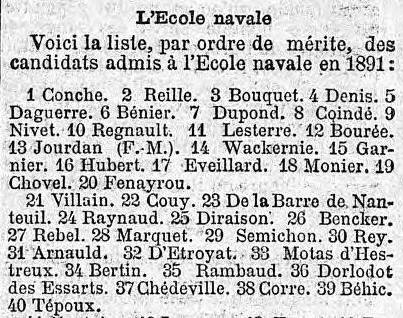 A fait partie de cette promotion : Sur le "BORDA III" - Cdt CV De COURTHILLE