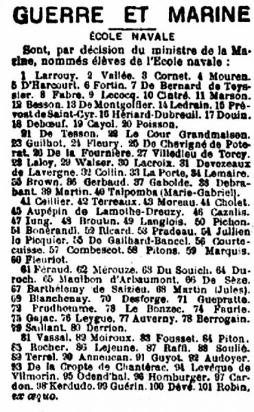 élèves de l’Ecole navale, à la suite du concours de 1900 :