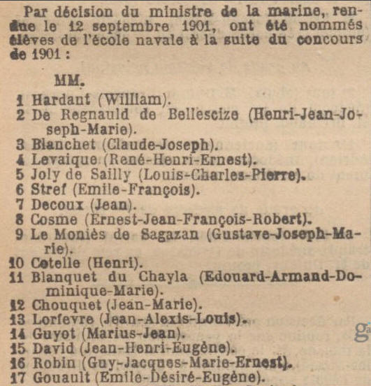 - GUEZ Jean François Marie Camille (1883 - 1908)