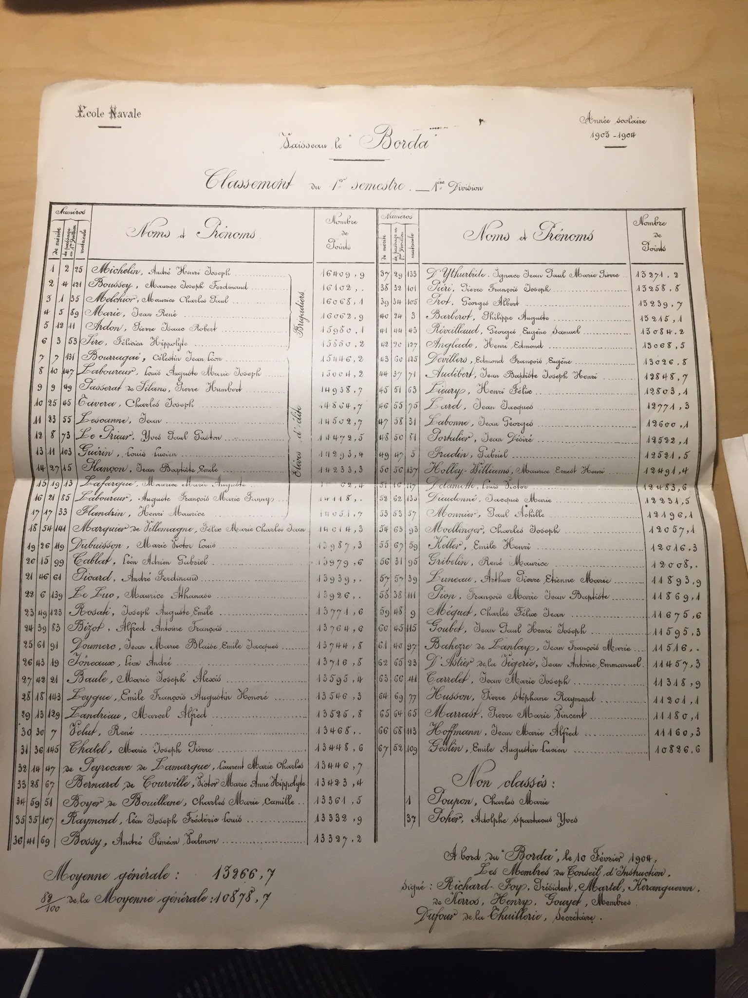 Classement 1er semestre