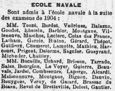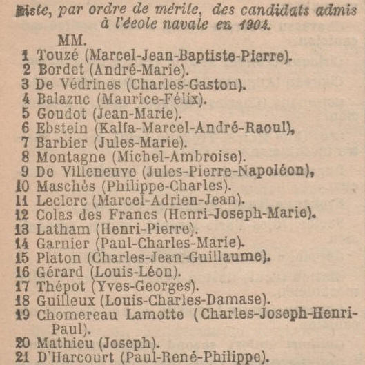 - MARY Eugène Victor Louis André (1878 - 162.) Rattaché à la promotion 1904 de l'Ecole navale