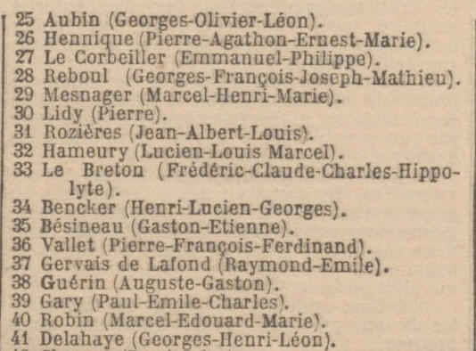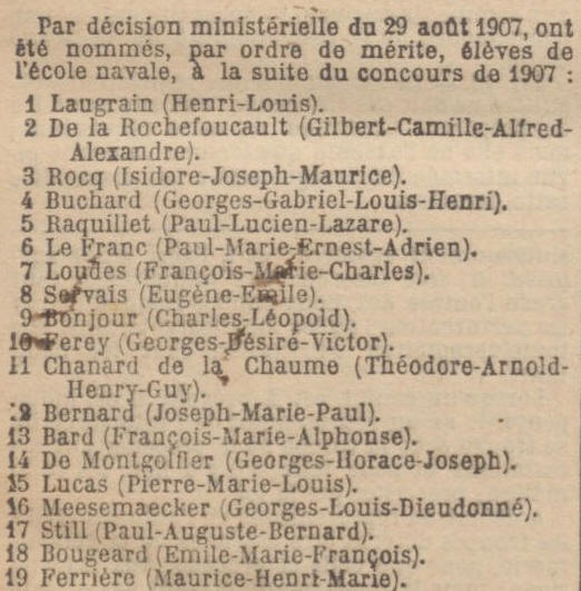 - LAUGRAIN* en fait LE GRAIN Henri Louis, major de promotion au concours d'entrée, démissionnaire