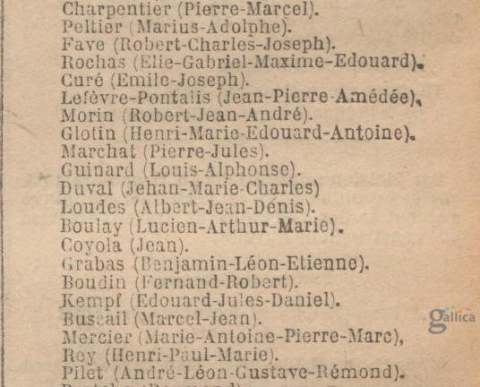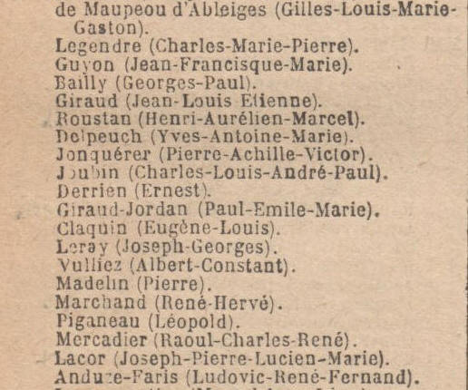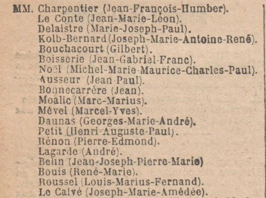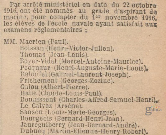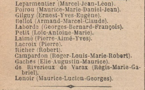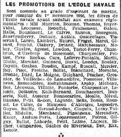 Liste des 108 élèves promus Aspirant le 1er novembre 1916