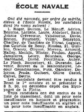 DUCOM ... (Admis à l'Ecole Navale au concours mais décédé