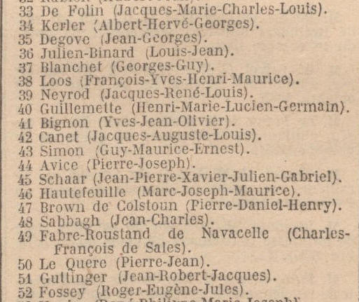Liste avec prénoms, extraite du Journal officiel du 28 aout 1937