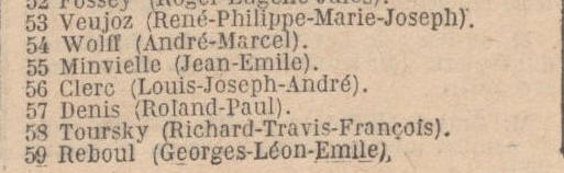 - VEUJOZ René Philippe Marie Joseph (1919 - 1941)