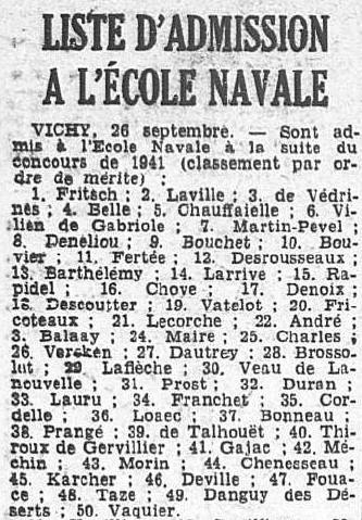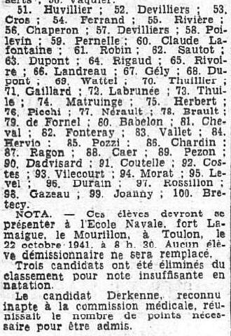Liste / Extrait Ouest-France / 30 septembre 1941