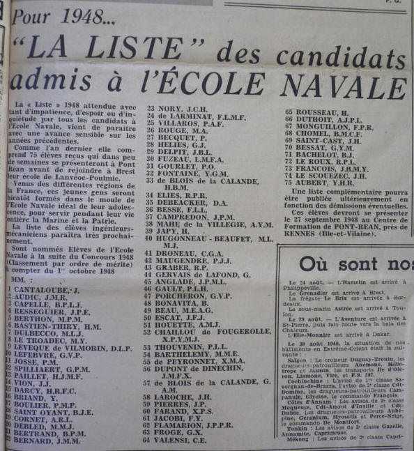 Liste Promotion / Extrait Cols bleus du 3 septembre 1948