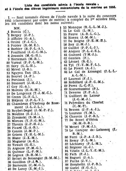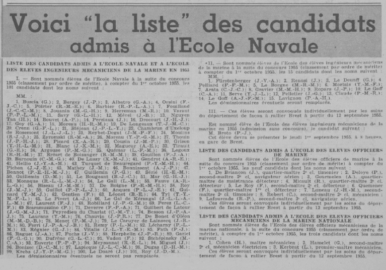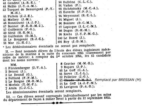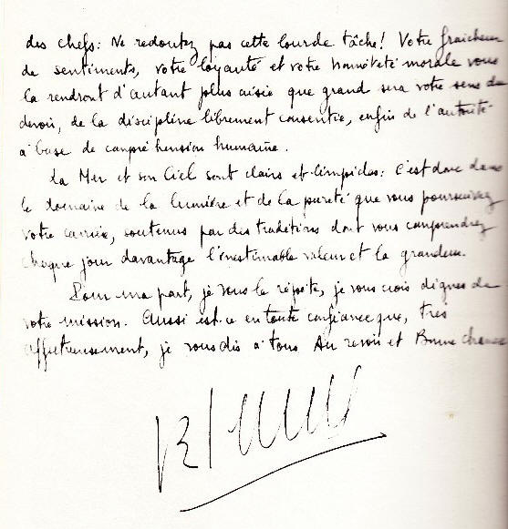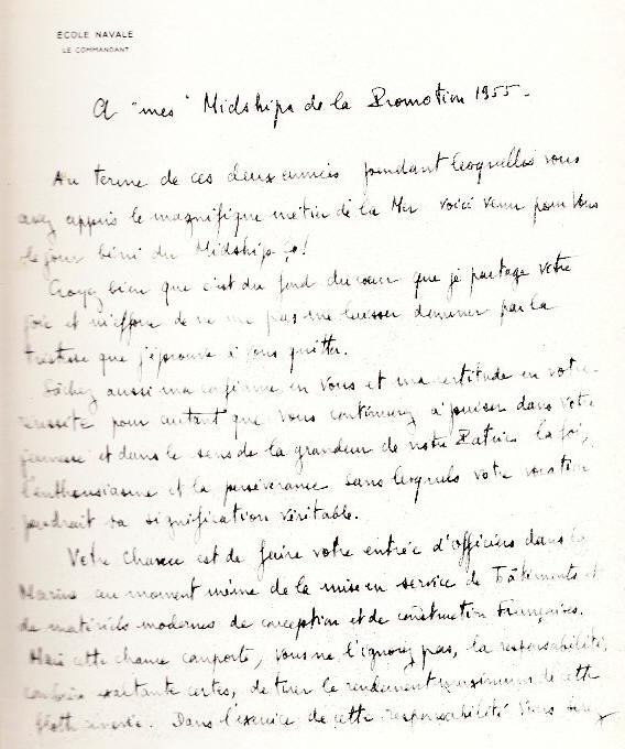 Lettre écrite par le commandant de l'Ecole navale aux élèves de la promotion 1955