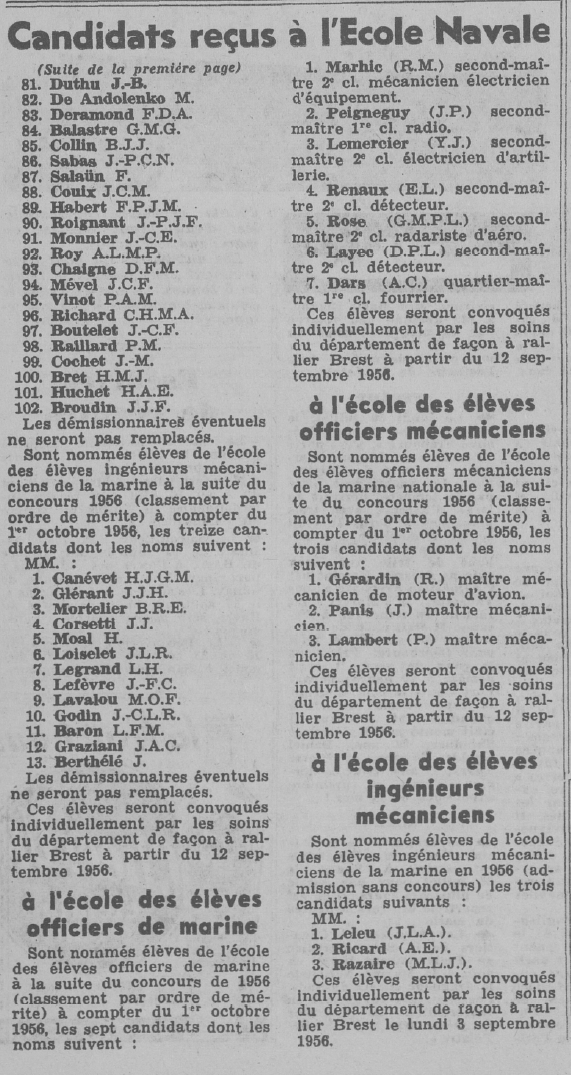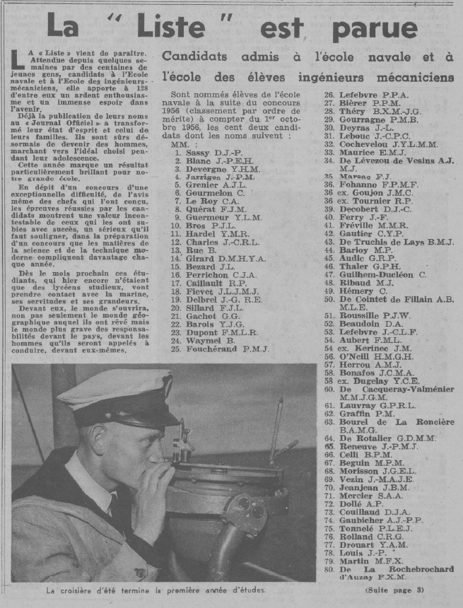 Rattachés ou admis à l'Ecole des Officiers de Marine