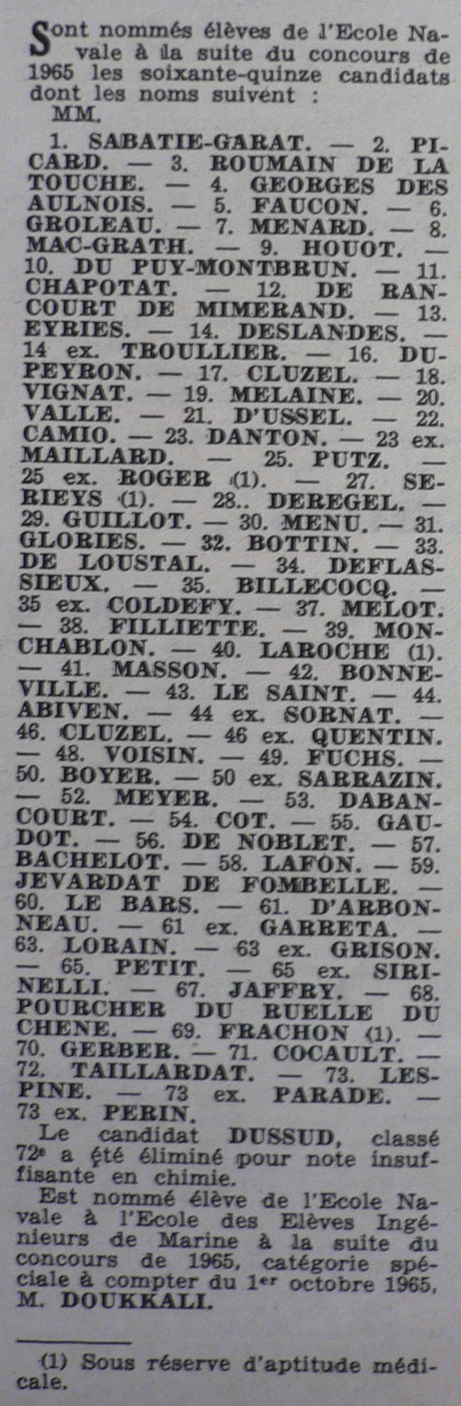 2- En 1965, à ce concours se présentaient 3