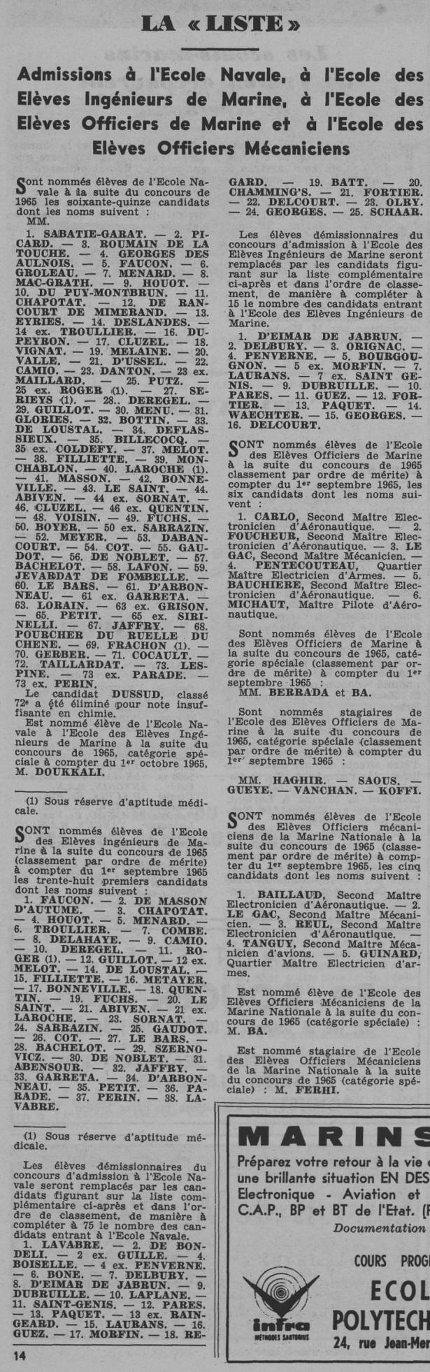 Mécanicien pendant l'année 1966 et Elève de l'Ecole Navale
