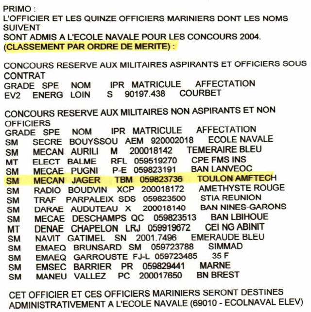 Liste définitive de la promotion Ecole navale 2004