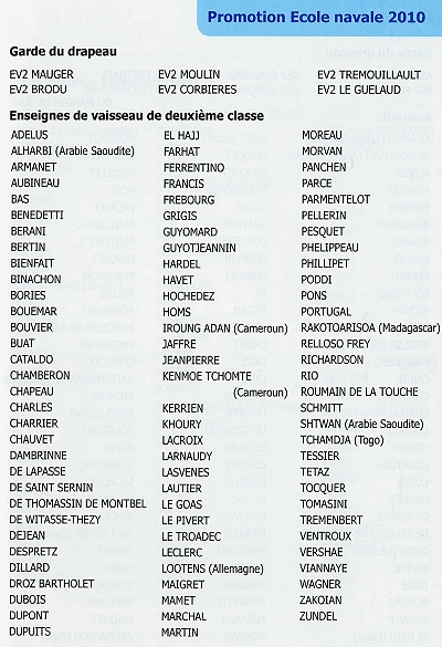 Officiers de Marine admis sur concours Titres 3 en 2012 rattachés à